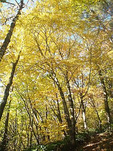 浅い雑木林に変わり、林道を渡ると尾根上になる。