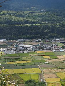 龍王山の尾根を見ながら、田んぼの中の道を行く。 去年同様、新堀神社の手前から山に入り、5分も歩かずに吾妻山で大休止。