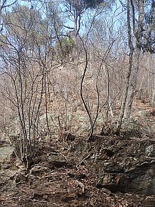 岩場は一枚岩でなく、急斜面に岩塊が露出した感じだった。