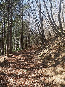 復活した道型をたどっていくと、ちょっとした峠状のところに着く。