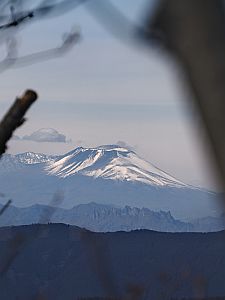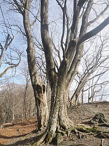 鞍部へやや下り、本峰へ急登する。 本峰はなかば植林に覆われていて、薄寒かったので、回れ右して、暖かな鞍部で大休止。