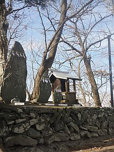 スギ林から雑木林になると尾根の上で、いくつかの供養塔が立つ。