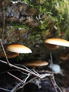 おおむねアカマツ混じりの雑木林だが、老樹が多く荒れているので、きのこはなさそうだ。