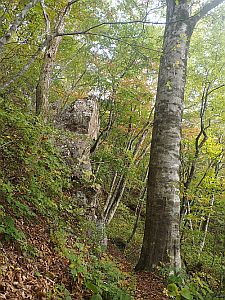 傾斜が緩むあたりから自然度がやや高くなり、ブナやミズナラの若い林となる。