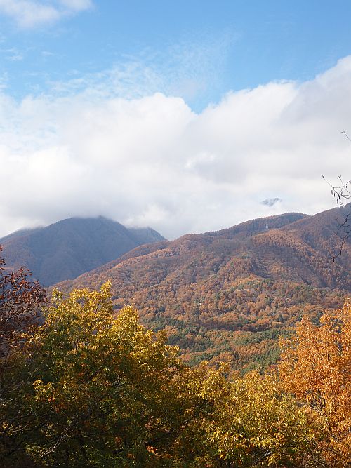 奥秩父連山(芋木ノドッケ・飛龍山・和名倉山・雁坂嶺あたり)を眺めながら、干し芋とササギ汁粉をいただいた。
