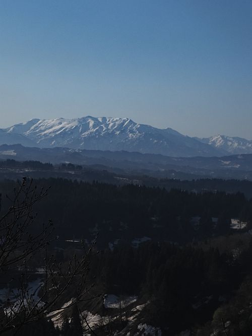 先日登ることができなかった小千谷(新潟県)の城山へ。道路は除雪していただいてあった。穏やかな道をのんびり登って、山頂。