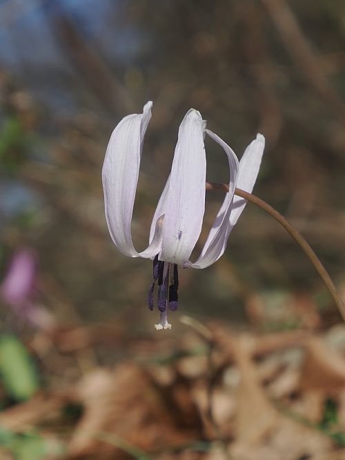 写真は、城山で見た白いカタクリ。