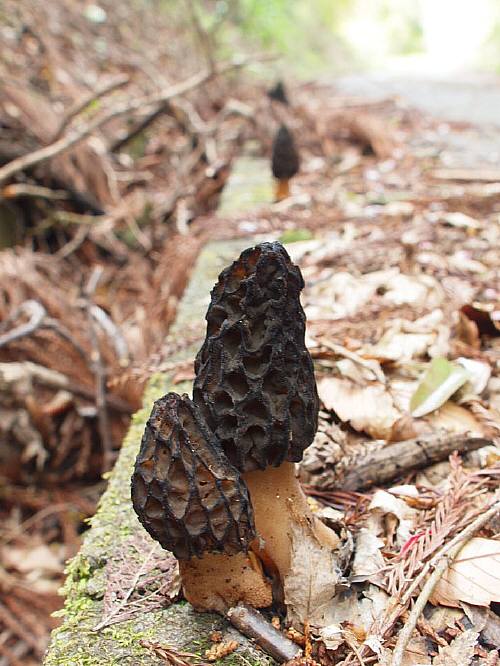 他のアミガサタケと比べて、頭部が黒っぽく、尖り気味である。